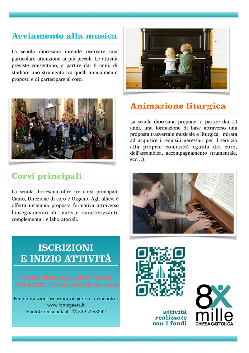 Prende il via nell’Arcidiocesi di Gaeta, dopo un giusto periodo di riflessioni e di programmazione, la sperimentazione dell’Istituto Diocesano di Musica Sacra.